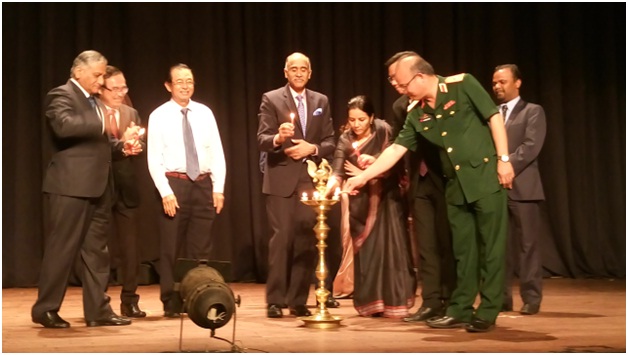 Đại tướng Tiến sĩ V.K.Singh cùng với đại diện chính quyền TP.HCM thực hiện nghi thức thắp đèn trong sự kiện văn hóa “Maitree” (có nghĩa là “tình bạn”) do Đại sứ quán Ấn Độ và Bộ Văn hóa, Thể thao Du lịch tổ chức tại nhà hát TP.HCM