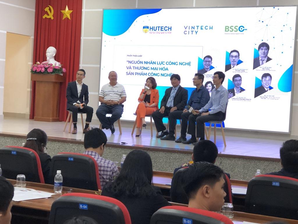 Tại hội thảo cũng diễn ra phiên thảo luận với chủ đề “Nguồn nhân lực công nghệ và thương mại hóa sản phẩm công nghệ”. Các diễn giả tham gia phiên trao đổi này gồm PGS.TS Đỗ Văn Dũng (Hiệu trưởng trường Đại học Sư phạm Kỹ thuật TP.HCM), ông Trương Quốc Hùng (Tổng Giám đốc VinBrain – 25 năm là kỹ sư và lãnh đạo chiến lược sáng tạo sản phẩm Tập đoàn Microsoft – Mỹ), ông Phí Anh Tuấn (Phó Chủ tịch Hội Tin học TP.HCM), TS. Đinh Bá Tiến (Trưởng khoa Công nghệ thông tin, Đại học Khoa học Tự nhiên TP.HCM), TS. Nguyễn Xuân Hoàng Việt (Phó hiệu trưởng Đại học Công nghệ TP.HCM) và bà Trương Lý Hoàng Phi.