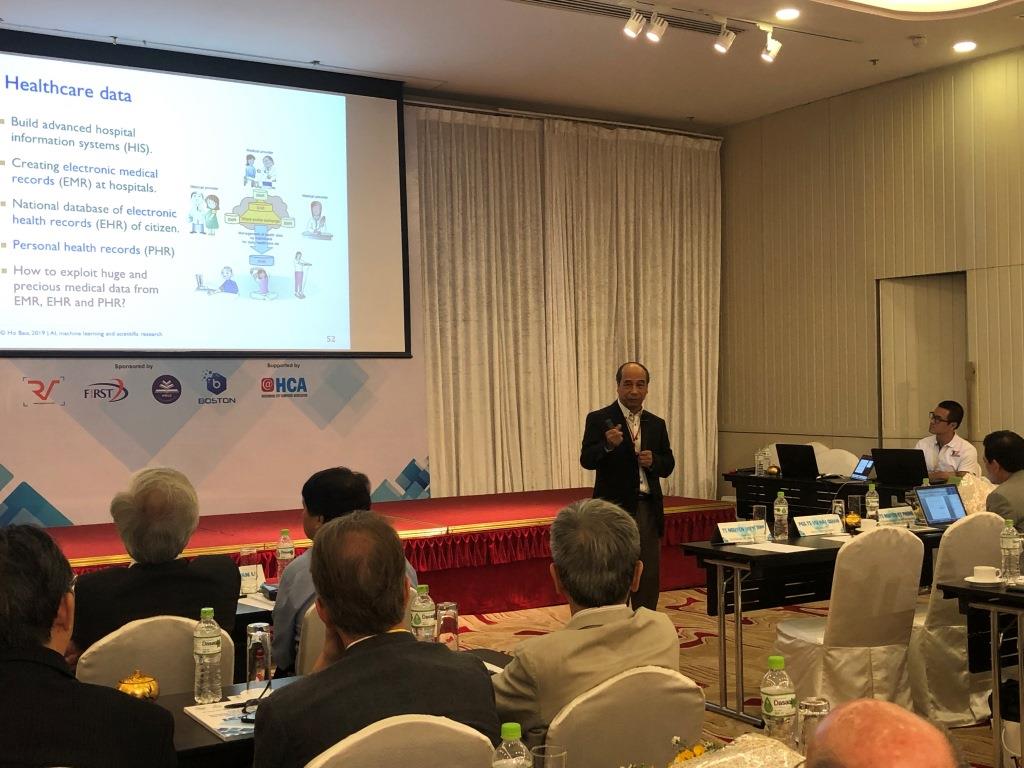 GS. Hồ Tú Bảo trình bày chuyên đề về AI, học máy và nghiên cứu khoa học. Ảnh: LV.