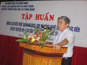 Từ ngày 7/8 đến ngày 9/8/2009, tại Ba Vì, Hà Nội, Trung tâm Nghiên cứu và Phát triển truyền thông Khoa học và Công nghệ (Bộ KH&CN) đã tổ chức chương trình tập huấn “Nâng cao kiến thức quản lý KH&CN cho cộng tác viên tuyên truyền khoa học công nghệ của các cơ quan thông tấn báo chí”.