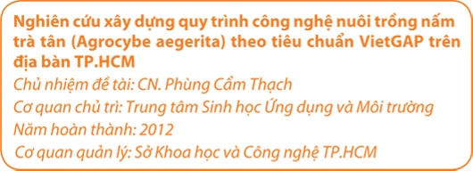 Quy trình nuôi trồng nấm trà tân theo tiêu chuẩn VietGAP trên địa bàn TP.HCM đã được xây dựng với quy trình kỹ thuật sản xuất chi tiết gồm địa điểm nuôi trồng, mùa vụ, giống, giá thể, chăm sóc và thu hoạch, bảo quản, phòng bệnh, quản lý và xử lý chất thải…