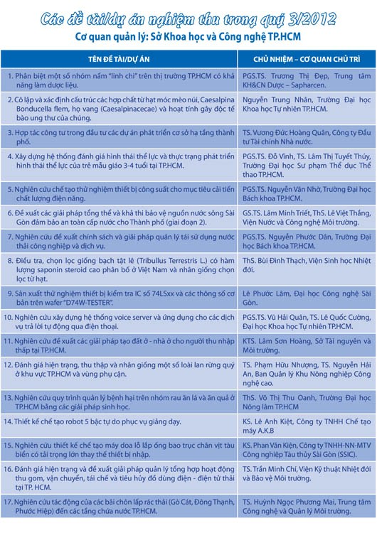 Tại TP.HCM, chất thải điện - điện tử (CTĐ-ĐT) đang là dòng chất thải tạo nên sức ép và thách thức đối với hệ thống quản lý môi trường, trong khi hoạt động thu gom/thu hồi của các nhà sản xuất/phân phối gần như không có, và lượng chất thải ngày càng gia tăng. Đề tài thực hiện nhằm đánh giá hiện trạng hoạt động thu gom, vận chuyển, tái chế và tiêu hủy đồ dùng điện - điện tử thải trên địa bàn TP.HCM; đề xuất các giải pháp quản lý tổng hợp hoạt động thu gom, vận chuyển, tái chế và tiêu hủy CTĐ-ĐT. Tập trung vào 3 nhóm sản phẩm là máy vi tính, điện thoại di động và tivi.