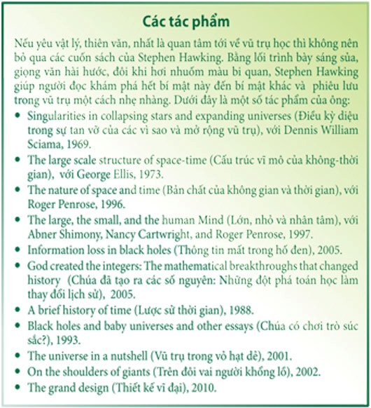 Trong tư thế gần như bất động trên xe lăn, với một người bình thường chắc hẳn chỉ còn là đời sống thực vật, nhưng Hawking với bộ não có năng lực sáng tạo tuyêt vời đã không ngừng phiêu lưu trong những dải ngân hà có khoảng cách hàng triệu, hàng tỷ năm ánh sáng để tìm lời giải đáp cho câu hỏi từ muôn đời nay: Chúng ta từ đâu tới? Thế giới bắt đầu ra sao? Vũ trụ do đâu mà có?... Thời gian có “trôi” ngược không?... Có lẽ nhờ vào việc luôn vận động, dù chỉ là vận động của bộ não, đã giúp cho Hawking vẫn sống, vẫn làm việc, vẫn sáng suốt phi thường, và làm những điều mà người bình thường cũng rất khó đạt được. Cái tên Stephen Hawking trở nên đồng nghĩa với “lỗ đen”, công trình được đánh giá là “chiếc chìa khóa mở cửa vào vũ trụ” và Stephen Hawking đã nổi danh là một trong những nhà vật lý lớn nhất hiện nay kể từ khi Einstein qua đời, một “siêu sao” trong bầu trời khoa học. Bất kể sự tàn tật, trường đại học danh tiếng nhất nước Anh là Cambridge vẫn bổ nhiệm ông làm Trưởng khoa Toán - Lý, một vị trí mà trước đây Isaac Newton đã từng giữ.