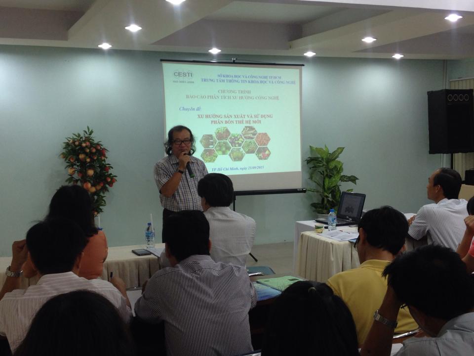 Mỗi năm Việt Nam đang sử dụng khoảng 10 triệu tấn phân bón các loại và hàng chục ngàn tấn thuốc bảo vệ thực vật trong hoạt động sản xuất nông nghiệp. Việc lạm dụng phân bón hóa học và thuốc bảo vệ thực vật đang gây ra những ảnh hưởng tiêu cực đến môi trường và sức khỏe con người. Thế giới và Việt Nam đã xuất hiện những chủng loại phân bón mới, thân thiện môi trường, phù hợp với xu thế phát triển nông nghiệp bền vững. Thông tin được TS. Nguyễn Đăng Nghĩa (Giám đốc Trung tâm Nghiên cứu và Tư vấn Nông nghiệp Nhiệt đới - TARCC) đưa ra tại báo cáo “Xu hướng sản xuất và sử dụng phân bón thế hệ mới” do Trung tâm Thông tin Khoa học và Công nghệ TP.HCM (CESTI) tổ chức ngày 25/9. Báo cáo đã thu hút 76 đại biểu quan tâm tham dự.