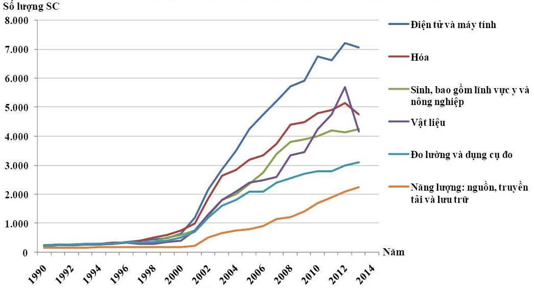 Ghi chú: số liệu từ cơ sở dữ liệu sáng của Cơ quan Sáng chế châu Âu (EPO)