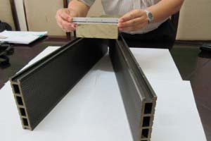Lớp vỏ  Chất chống bám dính khuôn magiê stearat được trộn thành bột nhão, bột nhão này được trộn thêm sợi đay có độ dài từ 1 đến 3 cm theo tỉ lệ phần trăm khối lượng là 20%, sau đó cán thành lớp composit dày 3 mm. | | Phần lõi  Trấu và keo alkyl phenol được trộn đều, sau đó trải thành tấm (trong khuôn) có kích thước 100 x 10 x 3 cm để khô tự nhiên ngoài không khí sau 24 giờ. Lớp vỏ composit được phủ lên lõi có để hở một đầu (không phủ lớp composit) và được đưa vào khuôn ép nóng ở nhiệt độ 140°C trong 5 phút dưới áp suất ép 200 kPa. Sau khi hoàn thiện, vật liệu dạng thanh thu được có kích thước: 100 x 10,5 x 3,5 cm. Sản phẩm này thích hợp cho các ứng dụng như: các loại cửa, nội thất trên tàu biển, bàn ghế học sinh, các thanh trong xây dựng, palet kê đồ trong các kho bãi, cột bắt giàn trong nông nghiệp, v.v… |