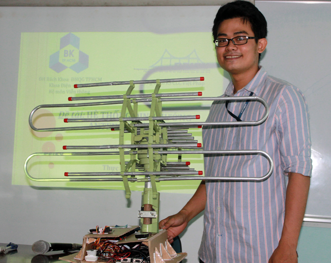Sinh viên Lê Thành Đạt, khoa điện - điện tử Trường ĐH Bách khoa TP.HCM, đã phát triển thành công hệ thống ăngten tự động điều hướng dùng để thu sóng truyền hình phát trên các phương tiện thường xuyên di chuyển liên tục như tàu, xe, đặc biệt là thuyền đi biển.