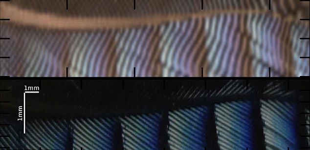 Cấu trúc của một sợi tơ của lông có thể được thay đổi theo chiều dài của sợi lông, tạo ra nhều màu sắc óng ánh. Ảnh: Daily Mail