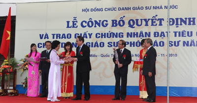 Ngày 14/11/2010, tại Văn Miếu Quốc Tử Giám, GS. Nguyễn Thiện Nhân, Phó Thủ tướng Chính phủ, Chủ tịch Hội đồng Chức danh Giáo sư Nhà nước đã trao chứng nhận chức danh Giáo sư, Phó Giáo sư năm 2010 cho 71 Giáo sư và 507 Phó Giáo sư.