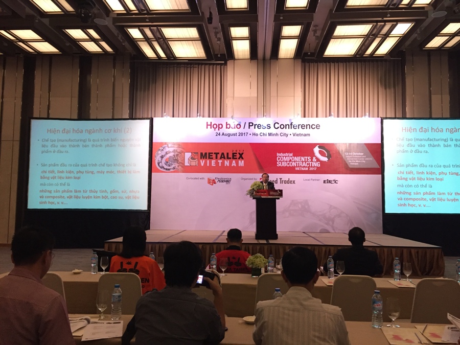 Ngày 24/8, Công ty Reed Tradex và Hội Cơ khí TP.HCM tổ chức họp báo “Đồng bộ hóa ngành sản xuất cùng Metalex Vietnam” và diễn đàn với chủ đề “Tạo dựng cơ hội cho ngành sản xuất Việt Nam trong thời đại công nghiệp 4.0”. Diễn đàn là hoạt động bên lề của triển lãm Metalex Vietnam 2017 (triển lãm quốc tế lần thứ 11 về Máy công cụ và các giải pháp gia công kim loại) sẽ diễn ra tại TP.HCM từ ngày 12 – 14/10.