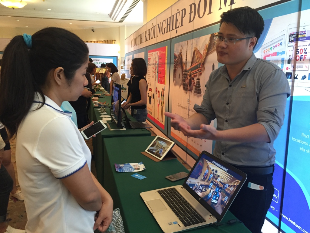 Trong khuôn khổ lễ công bố HIST 2018 còn có hoạt động triển lãm giới thiệu các sản phẩm dịch vụ của 15 nhóm startup ngành du lịch. Ảnh: LV.