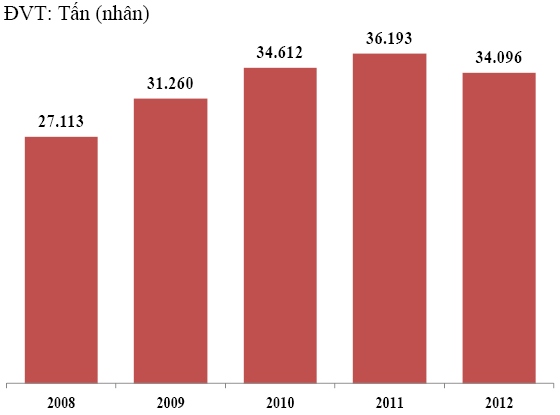 Nguồn: INC International Nut & Dried Fruit, Global Statistical Review 2008-2013.